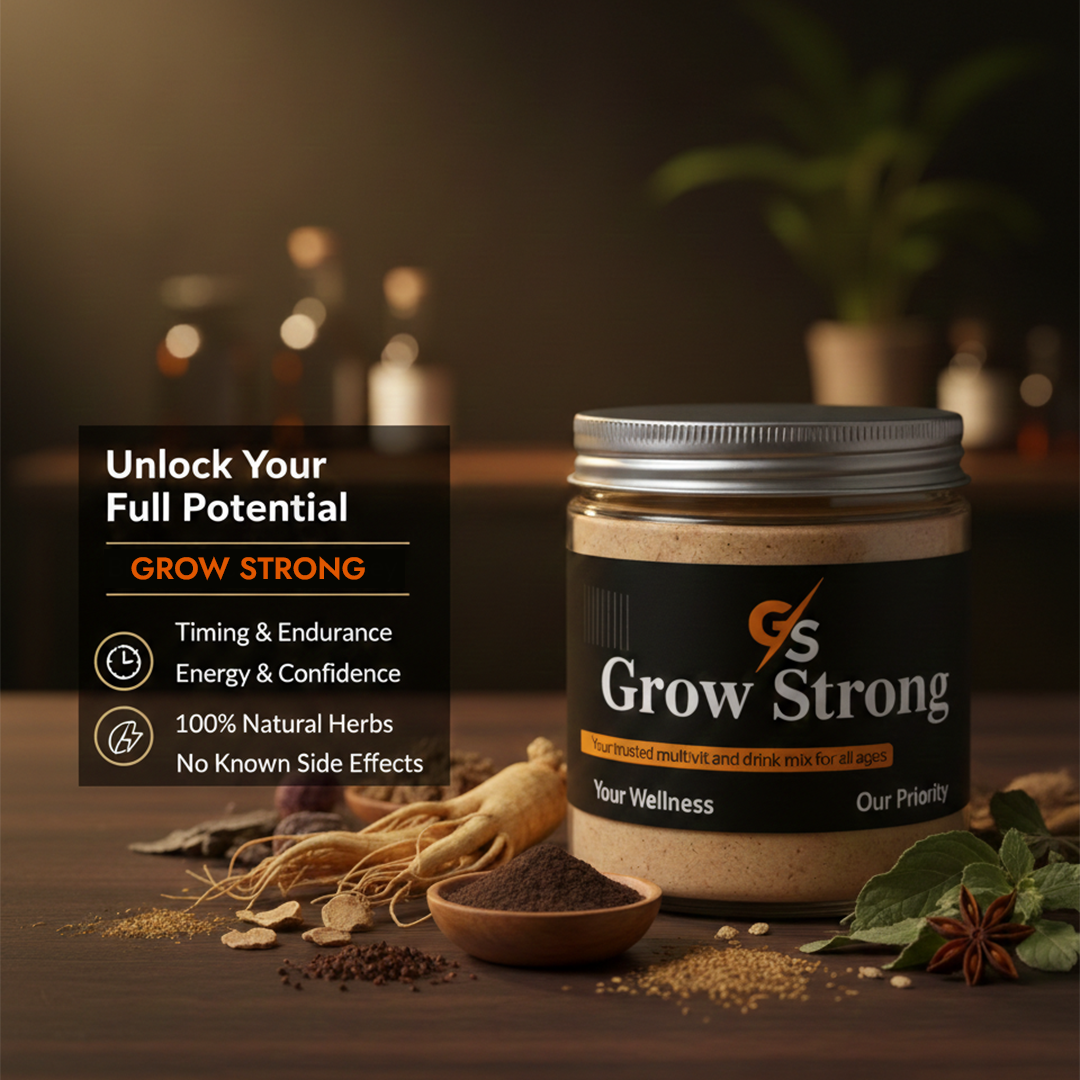 Loading...Grow Strong is a premium herbal powder formulated to support men’s strength, stamina, energy, and confidence naturally. Crafted from a blend of 100% natural and high-quality traditional herbs, this powerful formula is designed using ancient wisdom and modern knowledge to help enhance overall male wellness. It is free from harmful chemicals and has no known side effects, making it a safe and natural choice for daily use.